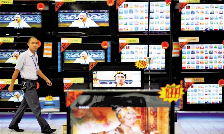 ①卖场里的4K彩色电视机。本报记者 苏晓杰 摄