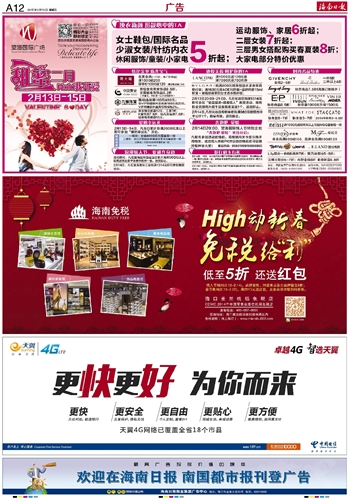 欢迎在海南日报 南国都市报刊登广告