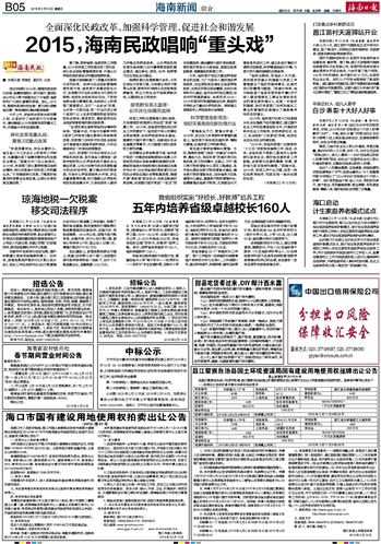 海南日报 海南新闻综合 017 2015-02-131 2015年02月13日 星期五