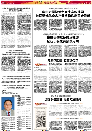 海南日报 聚焦省两会 002 2015-02-131 2015年02月13日 星期五