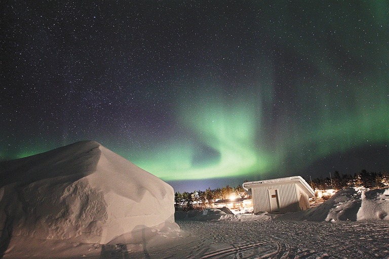 2月12日,在芬兰拉普兰地区,一座城堡上空出现北极光。 近日,芬兰拉普兰地区极光较为活跃,吸引世界各地游人前来观赏。 新华社记者 李骥志 摄