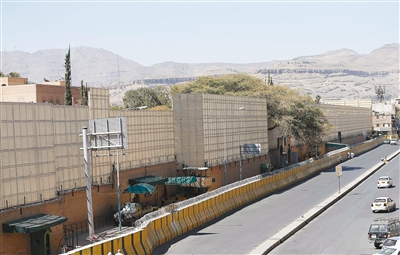 这是2月14日在也门首都萨那拍摄的沙特驻也门大使馆。 沙特阿拉伯外交部13日说,沙特已暂时关闭驻也门大使馆,将驻也门使馆工作人员安全撤出。 新华社/路透