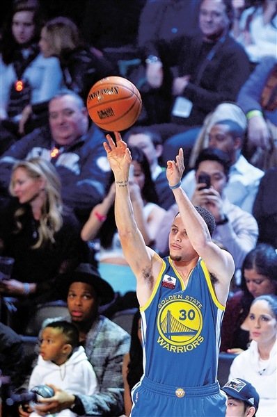 当晚的重头戏当属星光云集的三分大赛。本赛季前五名三分手全部参赛,八名选手中有五名入选了全明星正赛,包括勇士的库里和汤普森、火箭的哈登、骑士的欧文以及老鹰的科沃尔。