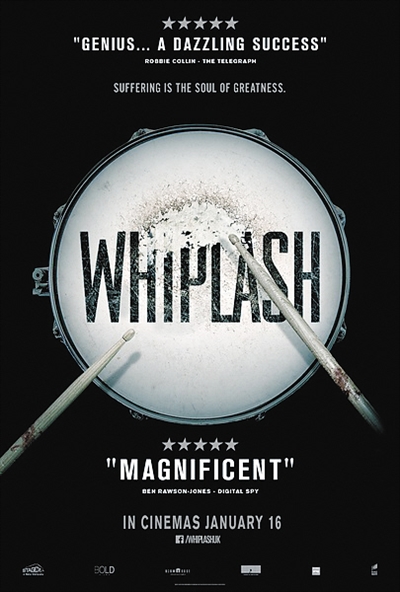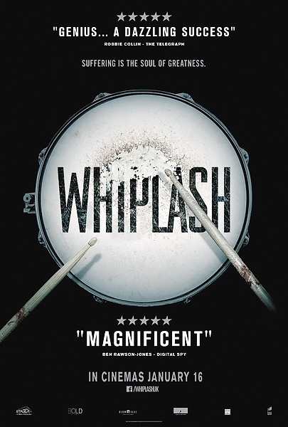 《爆裂鼓手》(Whiplash)同样来自圣丹斯,很多人将其与《黑天鹅》或《摔跤手》相提并论,认为其关于人生得失、成功代价等的讨论,颇有现代浮士德的意味,影片剪辑紧凑、表演凌厉,在赢得去年圣丹斯电影节最高荣誉评审团奖后,J·K·西蒙斯又拿下几乎所有前哨战的最佳男配,并顺利摘下演员工会(SAG)最佳男配,奥斯卡上染指该奖已是顺理成章。与此同时,由于本届奥斯卡前三号种子(《少年时代》、《鸟人》和《布达佩斯大饭店》)均竞争原创剧本,于是改编剧本整体实力偏弱,在拿下编剧工会(WGA)后,《爆裂鼓手》在与《美国狙击手》(American Sniper)竞争最佳改编剧本奖中稍占上风。
