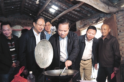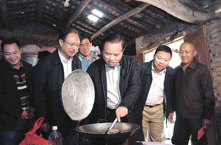 “家里收入有哪些?房子住得怎么样?孩子读书了吗……”在龙门镇大效村,刘赐贵走一路访一路,与农民、村干部拉起家常。他揭开退伍老兵符方茂家的锅盖,详细了解生活状况;查看了“威马逊”毁房户王有经在政府支持下重建的新房,探讨橡胶、槟榔的发展情况;嘱咐低保户谭锦清多运动、少抽烟,多保重身体。冯林俊夫妇俩都出生在1915年,同为百岁老人,身体健康,说起对政府照顾的感激依然声音洪亮,刘赐贵嘱咐村镇干部,百岁老人尤其需要各级党委政府,尤其是基层党委政府的关怀,一定要照顾好他们的生活,让海南的百岁寿星越来越多。