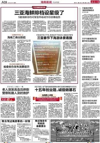 海南日报 海南新闻社会/民生 009 2015-02-171 2015年02月17日 星期二