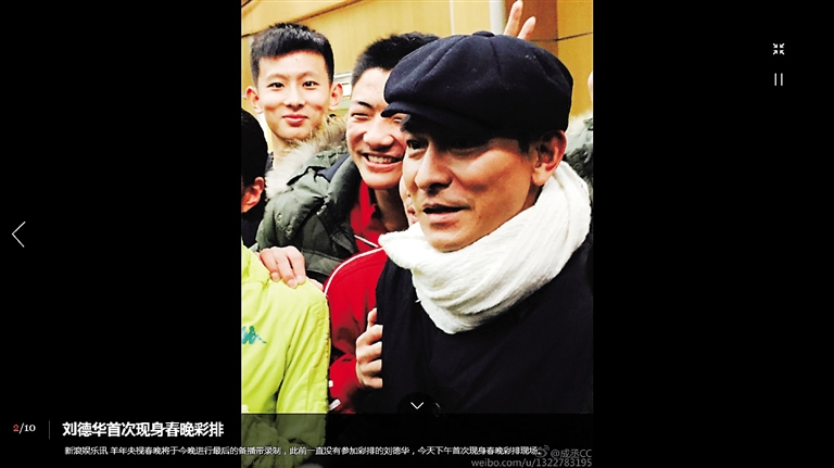 虽然春晚彩排现场戒备森严,但这毕竟是一个集合了众多大牌明星于一堂的地方。很多粉丝、媒体都会想方设法进入。于是,在一号演播厅外面的环形走廊里,总能见到形形色色的人,合影是最常见的事情。
