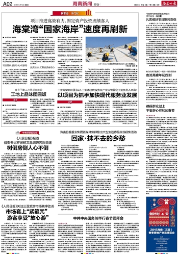 海南日报 海南新闻综合 002 2015-02-181 2015年02月18日 星期三