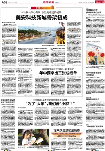 “整个美安一期有600多人在施工,机械有近500台套,其中重型机械就有300多台(套)。”2月15日,在海口美安科技新城A区项目现场,海口国家高新区发展控股有限公司下属海口佳和项目管理有限公司董事长窦惠源站在绕城高速穿越美安的一个制高点,指着整个美安一期说,“疏港公路以西、南海大道以南、粤海铁路以东、石山镇龙美公路以北60平方公里的土地上,将崛起一座美安科技新城,一座生态科技产业之城。”