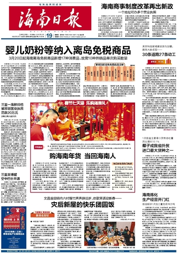 海南日报 头版 001 2015-02-191 2015年02月19日 星期四
