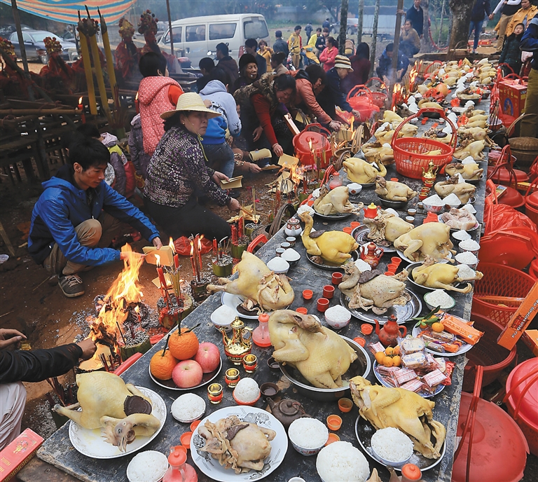 需要特别一提的是,在海南过“公期”,还有“无鸡不成宴”的说法。海口市民岑小姐说,她老家农村的“公期”仪式,首先是用鸡来祭拜“公”,然后再斩了上桌当菜。拜公一般选用个头大个的公鸡,有些地区还会每家每户出一只鸡,集体祭拜,形成壮观的“百鸡宴”。