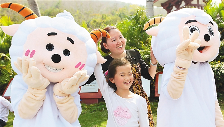 在万宁的永范花海、琼海的龙寿洋花海,春节期间也是游人如织。永范花海间一个巨大的“福”字美丽绽放,寓意着“花开富贵,迎春接福”,十分应景。