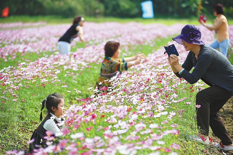 “没想到在这里的农田也能看到这样美丽的格桑花!”2月20日,大年初二下午4时许,来自内蒙古的游客张洋正在举着相机对着他眼前的花海拍个不停。在这片田洋中,绚烂的花朵开得让人炫目,引来了如潮的游人。据介绍,这片花海种植着薰衣草、格桑花、蓝香芥、虞美人等品种的花朵,由于花期不同,随着时间的推移,花海也会呈现出不同的色彩和景象。