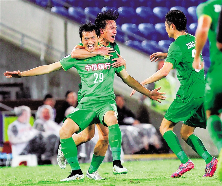 在G组的比赛中,北京国安队在上半场被罚下一人的不利情况下,凭借老将邵佳一终场前的任意球造成的“乌龙球”客场1:0战胜澳大利亚布里斯班狮吼队,亚冠历史上首次在澳大利亚客场取胜。