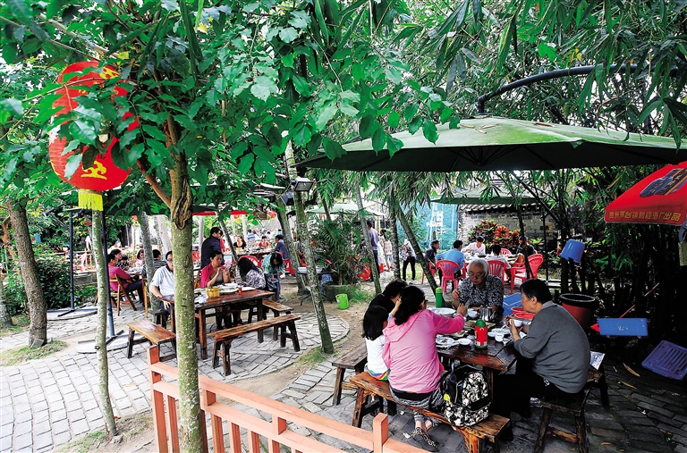 2月22日,大量自驾车游客来到琼海市博鳌镇美雅村,在阿叔农家乐大快朵颐。当天,琼海主打的“田园乡村游”,处处呈现火爆场面,自驾游客们在此尽享田园风光和悠闲时光。