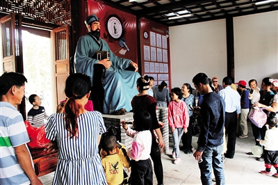 颇具济世情怀又超凡脱俗的苏东坡,赢得人们的热烈追捧。立在“载酒堂”附近的东坡雕塑,引来一批又一批游客与之合影留恋。