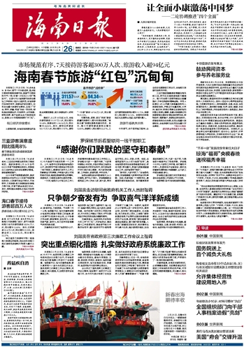 海南日报 头版 001 2015-02-261 2015年02月26日 星期四