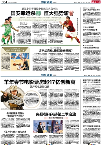 海南日报 体育新闻 娱乐新闻 012 2015-02-261 2015年02月26日 星期四