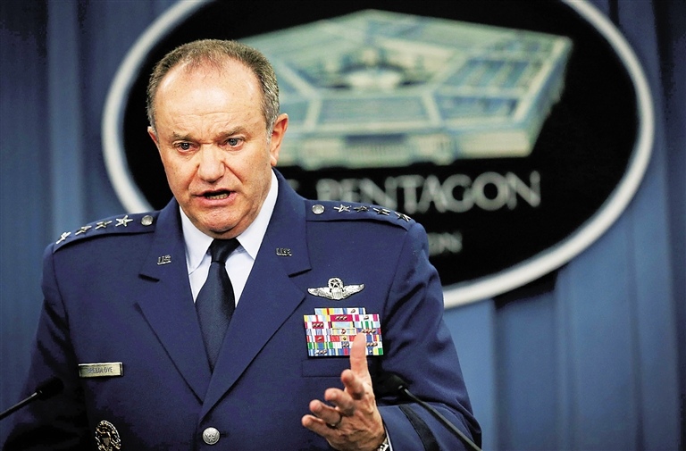 2月25日,在美国华盛顿五角大楼,北约最高军事长官、美军上将布里德洛夫在新闻发布会上讲话。 布里德洛夫当天说,目前无法预测俄罗斯对美国向乌克兰提供致命性武器将采取何种回应措施,但乌克兰局势可能会因此进一步恶化。