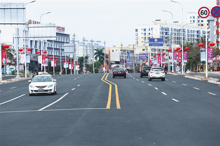 图为车辆在刚修建的定安县见龙大道顺畅行驶。本报记者 张茂 摄