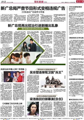 海南日报 娱乐新闻综合 012 2015-03-021 2015年03月02日 星期一