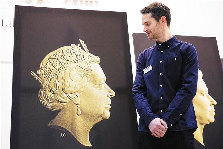 3月2日,在英国伦敦,英国皇家铸币厂雕刻师乔迪·克拉克展示女王的第五版肖像雕刻。 英国女王伊丽莎白在位期间的第五版肖像雕刻当日亮相,该肖像将被刻印在英国钱币上。
