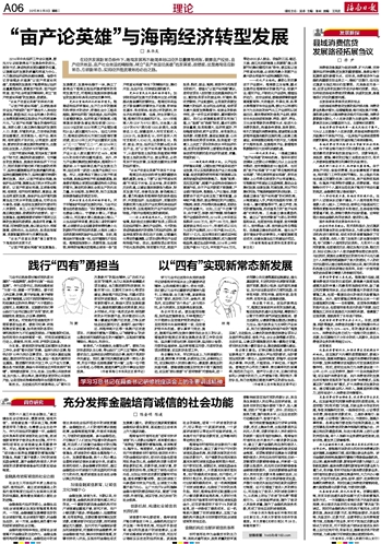 “亩产论英雄”与海南经济转型发展