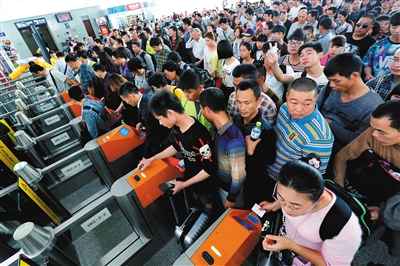 3月3日上午,在东环高铁海口东站检票口,旅客们排着长队检票进站。元宵节临近,海南各个车站港口均迎来了客流的小高峰。本报记者 陈元才 实习生 陈期财 摄