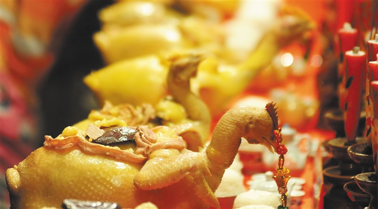20:00 肥鸡评委进行评选,被选肥鸡集中摆放至城隍庙前
