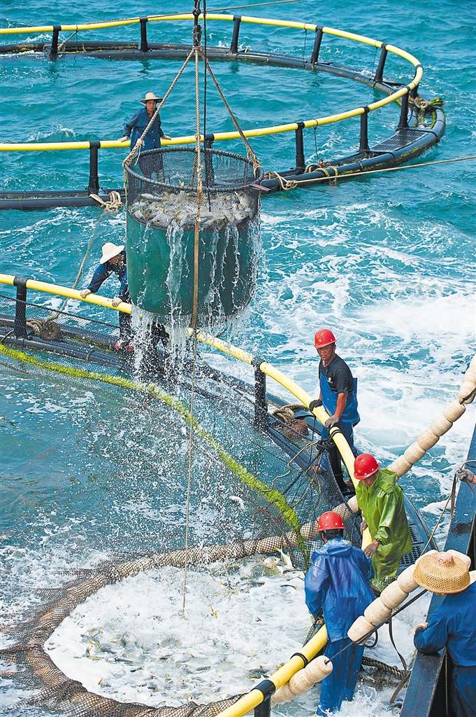 在今年的全国两会上,海南代表团拟向大会提交《关于支持发展南沙网箱养殖的建议》。不仅是在南沙,在海南适宜发展深水网箱养殖的沿海市县也在思考如何实现渔业从规模捕捞向深水网箱养殖的转型,为蓝色国土资源的开发利用增添一抹亮色。