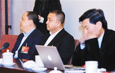 3月4日,全国政协十二届三次会议进行分组讨论。图为住琼全国政协委员李士伟(中)在文艺28组的小组讨论会上。