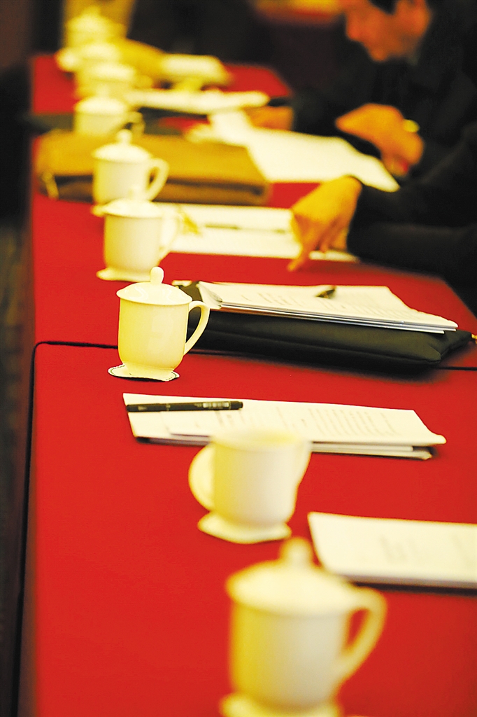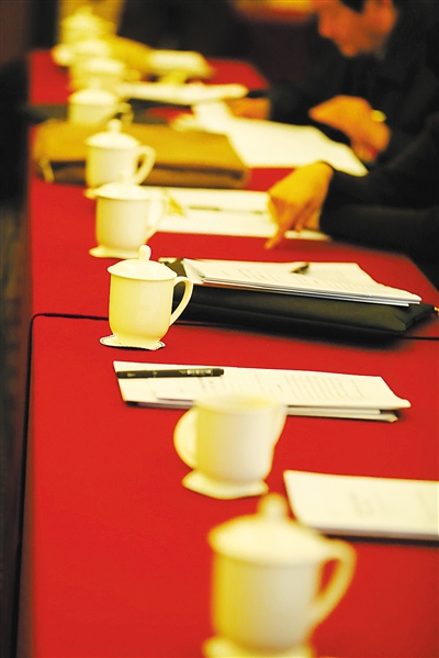 今年两会节俭的原则体现在许多细节上,接机没有红地毯、横幅,自助餐少了“硬菜”。在北京友谊宾馆政协委员驻地,委员们在小组讨论会上的用具一切从简,只有铅笔、墨水、涂改液和实名制矿泉水。本报特派记者 张茂 摄