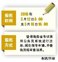 今年海南省公务员考试,省一级的招考单位招考条件更看重工作经历,尤其是基层工作经历。海南省公安厅交警总队、监所医疗卫生管理局、收容教育所等单位提供的46个招录职位,均要求具有两年以上基层工作经历。省委党史研究室、省委统战部、省妇联、省科协提供的4个招录职位,均要求“具有2年以上基层工作经历”。地税、食药监等部分专业性较强的职位,则对工作经历要求较少。
