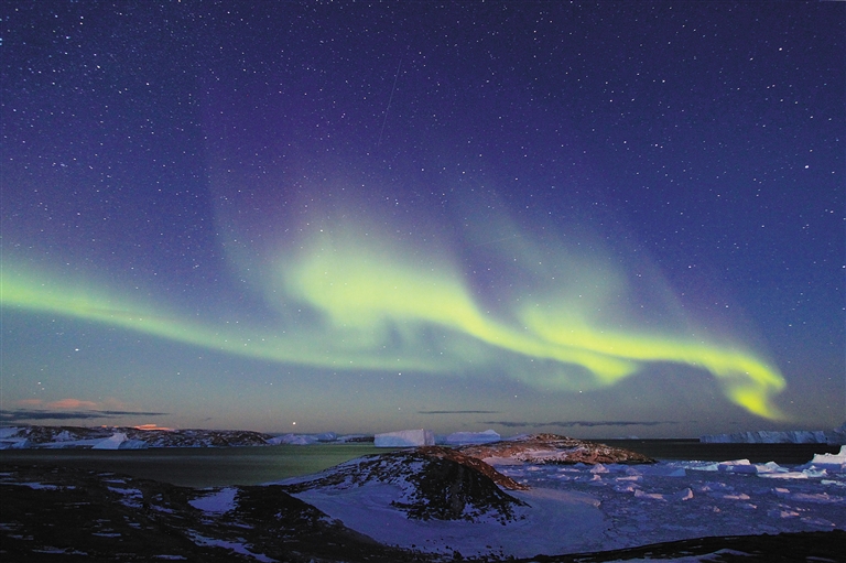 这是3月3日在中国南极中山站拍摄的极光。 当地时间3月3日凌晨,中国南极中山站站区上空出现绚丽的极光现象,持续时间超过数小时。 极光是发生在地球高磁纬地区的一种大规模放电现象。由于中山站特殊的地理位置,一天穿越两次极光带,是世界上进行极光观测的最佳场所之一。 新华社记者 白阳 摄