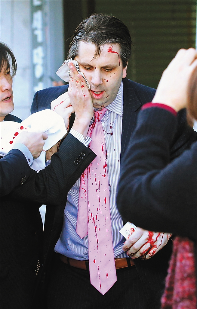 利珀特5日上午7时40分(北京时间6时40分)左右进入位于首尔市中心的世宗文化会馆世宗大厅,准备出席一个早餐会并发表演讲,不料突然遭遇袭击。
