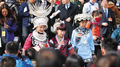 3月5日,十二届全国人大三次会议在京开幕,少数民族代表盛装出席。
