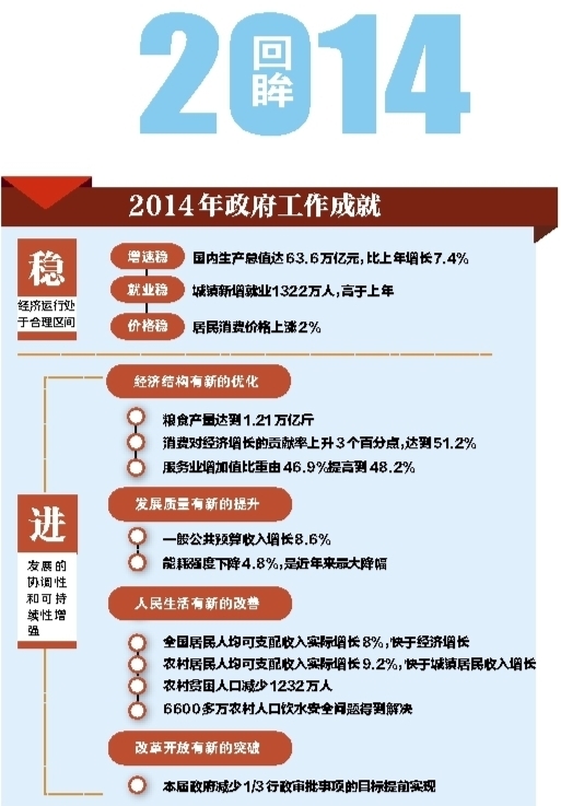 加强就业和社会保障。完善就业促进政策,推出创业引领计划,高校毕业生就业稳中有升。