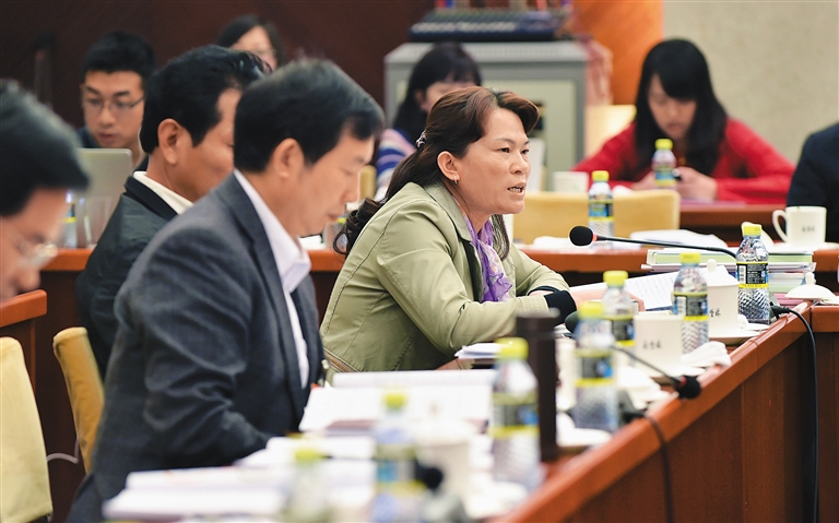 右图 3月7日,少数民族女代表黄月芳就有关农村留守妇女等问题发表建议。 本报特派记者 王凯 摄