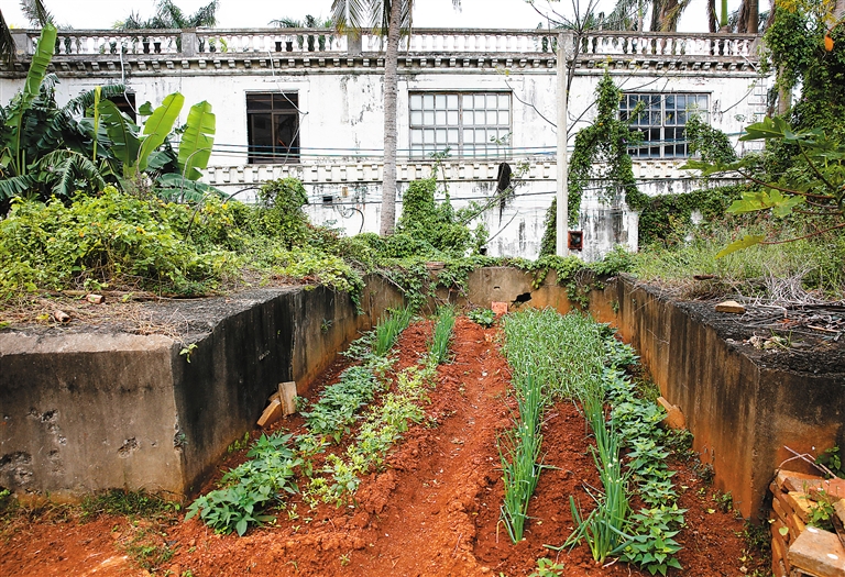 然而整个炮台现在已被荒草包围,炮台内的泥土比外围的泥土高出数十公分,西南侧墙垣破了个缺口,但并不影响留守人员的种菜之“乐”。5个炮位中3个整齐地种上了不同种类的蔬菜,中间空地亦划分出瓜藤、白菜等“势力范围”。