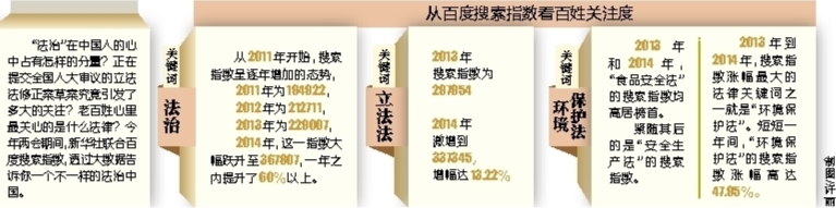 保障公民生产生活的“安全”始终是百姓对法律的最大期待。然而,除了吃到更放心的食品,有更安全的工作环境,人们对头顶蓝天的期待也通过对相关法律的关注热度中表现了出来。