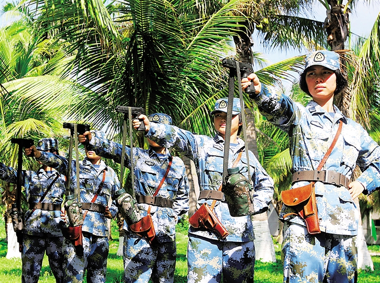 2001年5月14日,西沙群岛迎来了首批7名海军女兵。此后,一茬茬女兵在被誉为“天的边际、海的尽头”的西沙群岛,共同承担起守卫西沙、建设三沙的光荣使命。十多年来,西沙女兵班先后荣立集体二等功1次、集体三等功2次,曾被全国妇联表彰为“巾帼建功文明示范岗”, 战友们亲切地称她们为绽放在祖国南疆前哨的铿锵玫瑰。