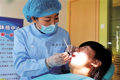 3月9日,在威海市国济体检中心,哈工大(威海)土木工程系志愿者薛秋晨凭爱心服务时间兑换一次免费口腔护理。 为提升志愿者爱心服务的社会认同感,共青团威海市委今年3月份推出“威海志愿者卡”,该卡与威海市志愿服务数据库关联,可记录志愿者的身份信息、服务时间、培训信息等内容。当志愿者的爱心服务达到一定时长,便可持卡到指定爱心单位兑换免费体检、免费旅游、免费理发等12项相应的福利回馈服务。