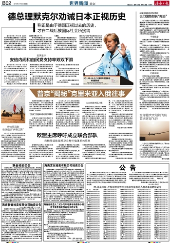 海南日报 世界新闻综合 014 2015-03-101 2015年03月10日 星期二