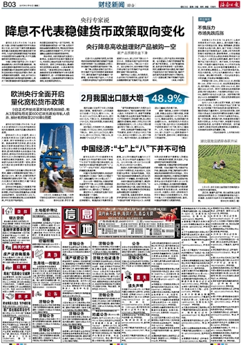 海南日报 财经新闻综合 015 2015-03-101 2015年03月10日 星期二