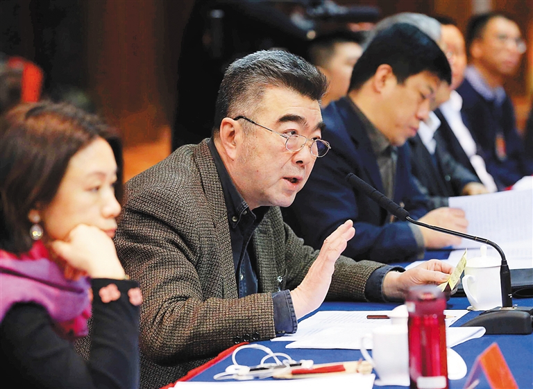 全国政协委员陈小川认为,互联网发展日新月异,在新媒体和传统媒体融合发展的今天,网络上充斥着任意拿来,随意篡改传统媒体新闻稿件的状况,这种状况令人担忧。新闻报道是有知识产权的,新闻记者的劳动需要应有的保护和尊重。 新华社记者 刘卫兵 摄