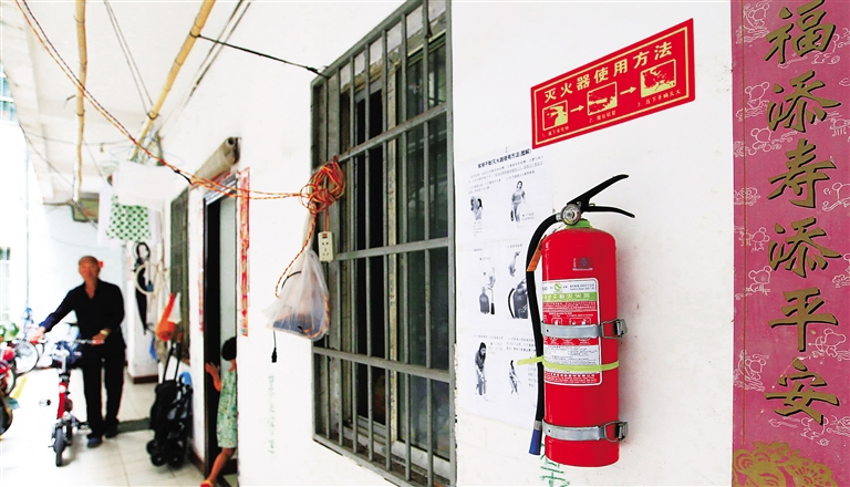 三亚市吉阳区政府投资23万元,为港门村社区出租屋配置干粉灭火器约2000具,目前首批64具已到位,配置在2栋8层公寓楼内,每层4具。切实增强了居民扑救初期火灾的能力。据悉,三亚市吉阳区港门村社区为三亚最密集的候鸟老人聚集居住地。本报记者 武威 摄