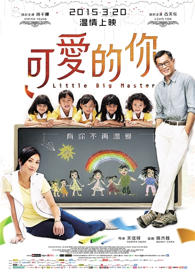 但在今天公布的终极版海报中,却给人一种温暖而幸福的感觉。海报在暖色系的可爱卡通背景中,用大大的黑板使师生关系一目了然,5个孩子并排扒在黑板后,笑容灿烂,乖巧可人,杨千嬅与古天乐则一左一右守护在孩子们身旁,眼神中传递着满满的爱与关怀,与影片“有你,不再渴爱”的主题完美契合。同时曝光的预告片中,杨千嬅与古天乐温暖地守护着5个孩子,身为校长的杨千嬅,更是一肩扛起幼儿园的所有工作,为了学校不被停办,她费尽了心力,几近拼命,她用自己无私的爱与奉献,令小朋友们从最初的谨慎防备到逐渐敞开心扉,她成了这5个小朋友心中最值得信任的人,深厚的师生情谊,简直暖到骨子里,看后将让每一个观众都动容。
