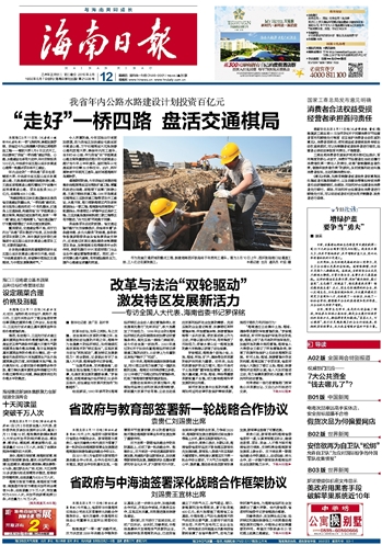 资金是项目启动的前提。省交通运输厅副厅长刘保锋表示,我省将本着“多条腿走路、多元化融资”的思路,除积极争取国家部委资金及省地债资金支持外,还将通过改革交通投融资体制筹措项目资金,发挥海南交控等融资平台的作用,探索和推行PPP(即政府部门与企业合作)建设管理等新模式。同时,进一步完善公路代建制,有效减轻融资压力,提升公路建设质量和效益。