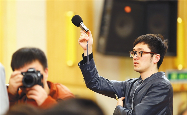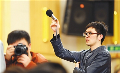 两会期间,来自国内外的3000多名记者汇聚人民大会堂。为了在被围得水泄不通的人群中“逮到”自己想要的采访对象,不少记者有备而来,带来的各种采访“神器”让他们在报道中颇占优势。 本报特派记者 张茂 摄