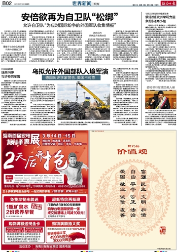 海南日报 世界新闻军情 010 2015-03-121 2015年03月12日 星期四